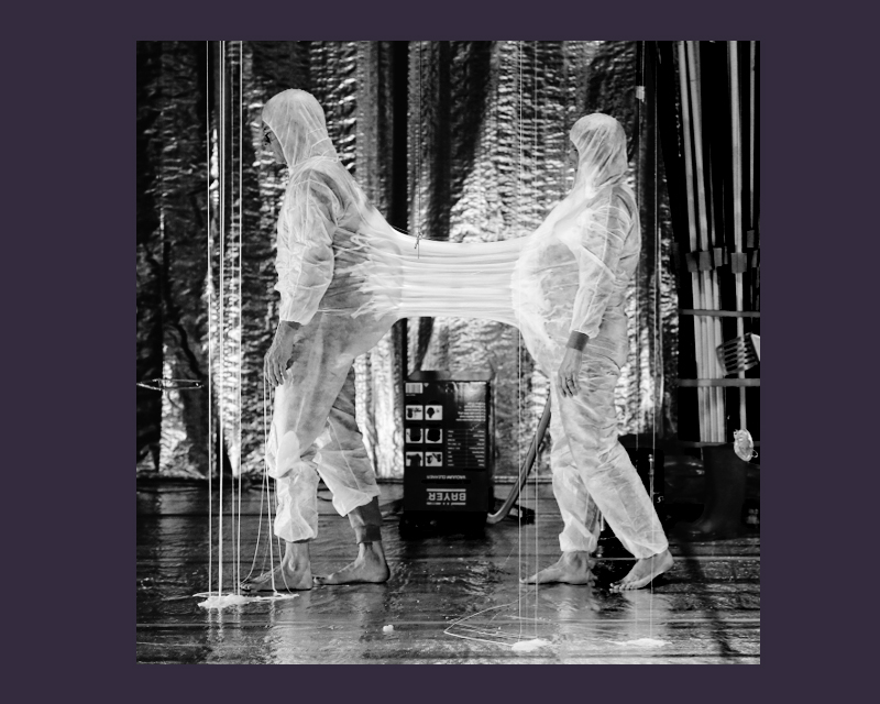 We are interested in the ubiquity of the things we find around; everyday materials that most of us deal with on a day to day basis, are an in. Anyone can relate to sticky tape for example, and then what we do with it and where we take the performance, can lead the audience into a place they’ve not been before. The pay-off is an experience of performance unlike anything you’ve seen before.