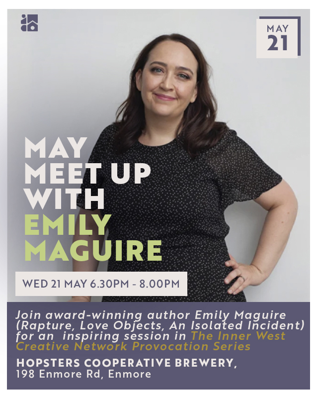 Join award-winning author Emily Maguire for an inspiring session in The Inner West Creative Network Provocation Series. Emily, the author of seven novels and three non-fiction works, including the critically acclaimed An Isolated Incident and Love Objects, will discuss her latest novel, Rapture. With deep insights from her career, Emily will explore the themes of writing, staying in your lane (and breaking out of it), and finding light through personal touchstones.